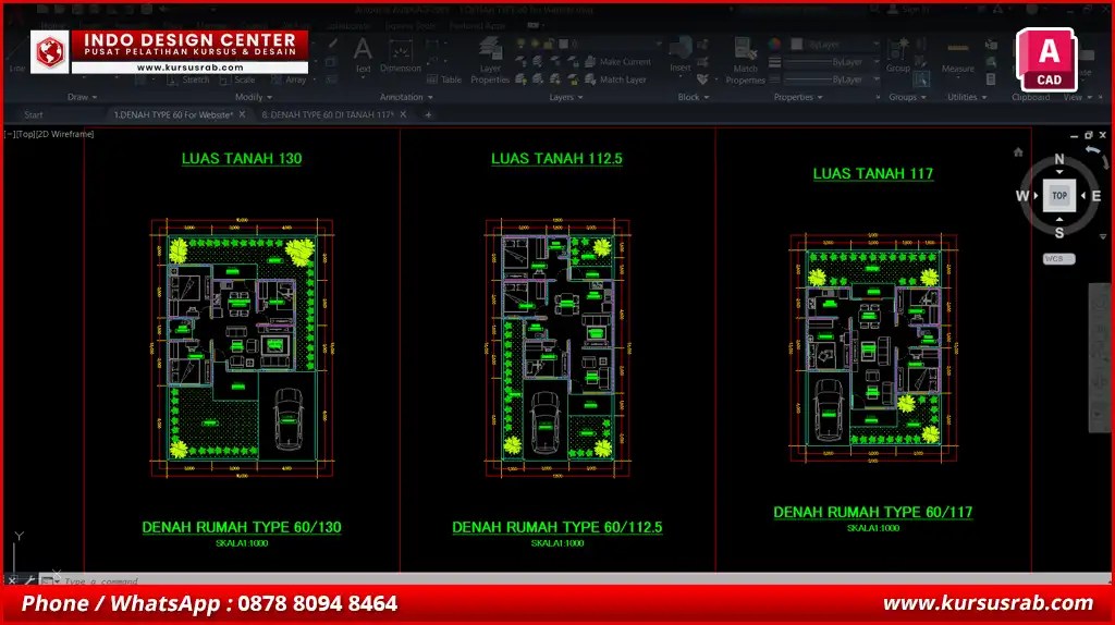 Buat Sobat Kursus yang sedang belajar atau ingin meningkatkan kemampuan desain rumah menggunakan AutoCAD, denah type 60 adalah pilihan latihan yang tepat.